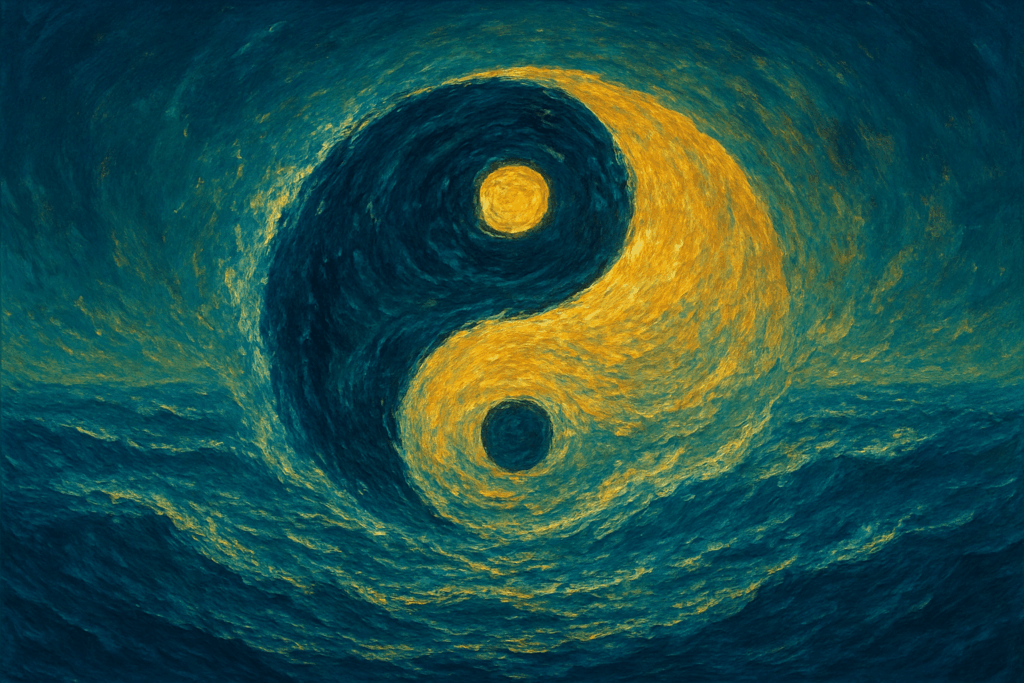 C’est la conscience de l’harmonie universelle, du principe du yin et du yang régissant toute existence. L’être humain cesse de lutter contre le flux — il s’accorde à cette danse rythmique cosmique.