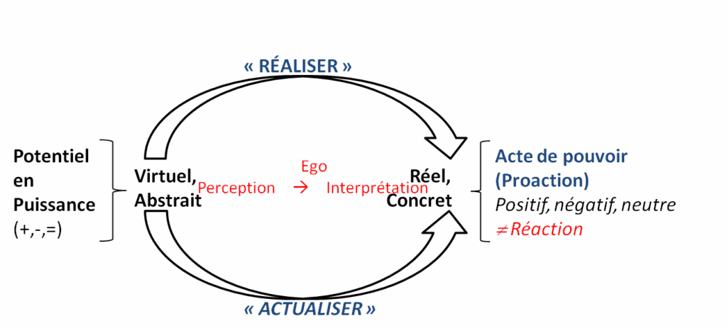 « Réaliser », c’est se libérer d’un ensemble de réponses préconçues par d’autres, par tradition, par répétition, et imposées comme dogmes, croyances ou idéologies, morale ou éthique, mais qui ne visent qu’à conformer, programmer, conditionner. Il s’agit donc de sortir de la mentalité, de la personnalité construite qui perçoit sa réalité, et « prendre conscience » ou aussi « se rendre compte » pour découvrir la Vérité.